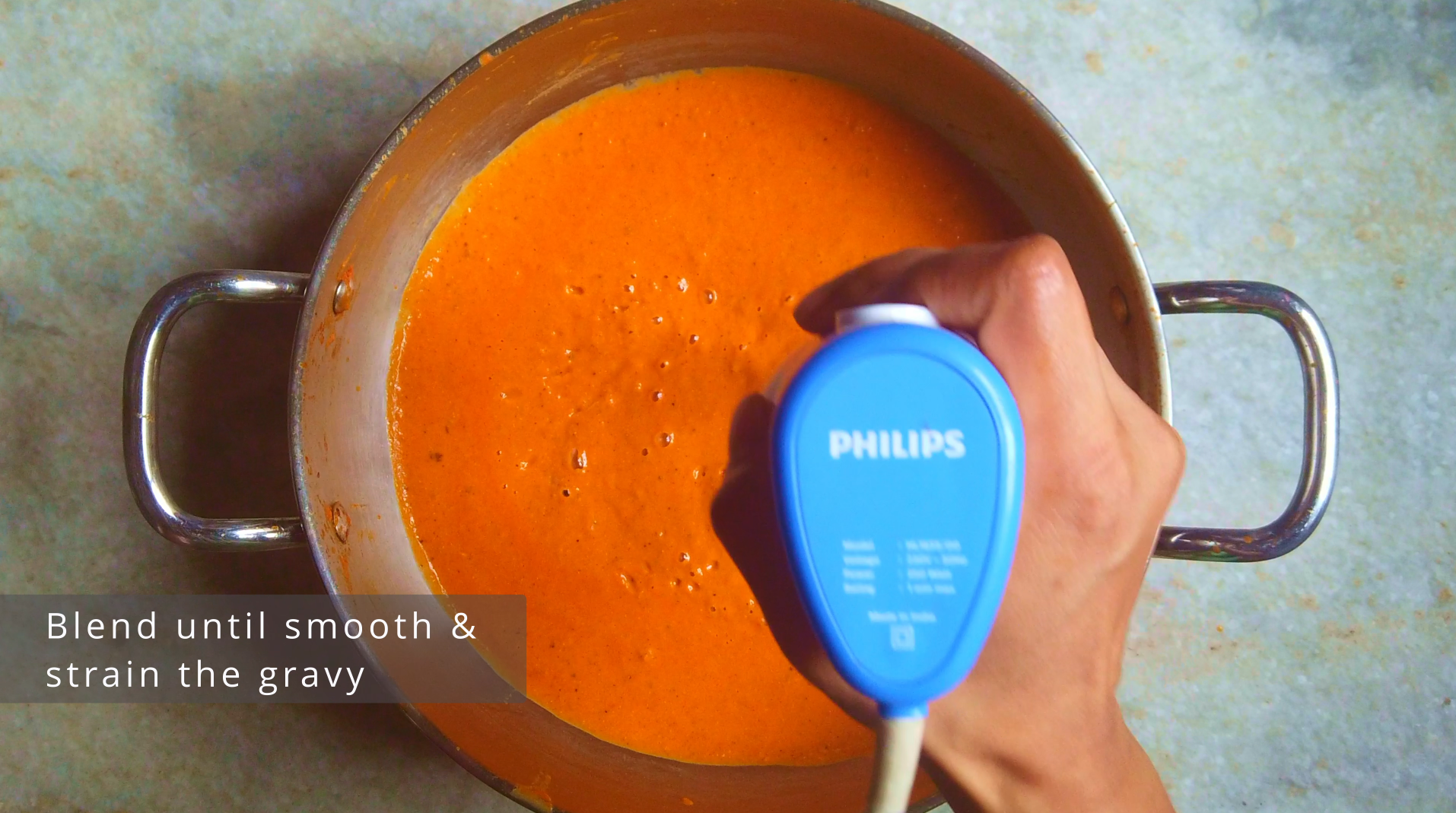 - Step 11: Once the gravy is done and let it cool for 5-10 minutes. Then blend the masala gravy with a hand blender and strain the gravy.