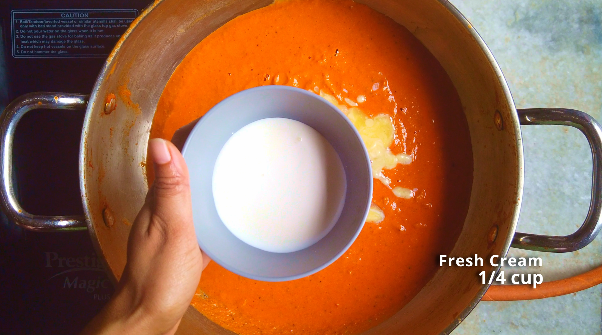 - Step 12: In the same wok of blended gravy add butter. cream, honey and salt to taste, stir to combine.