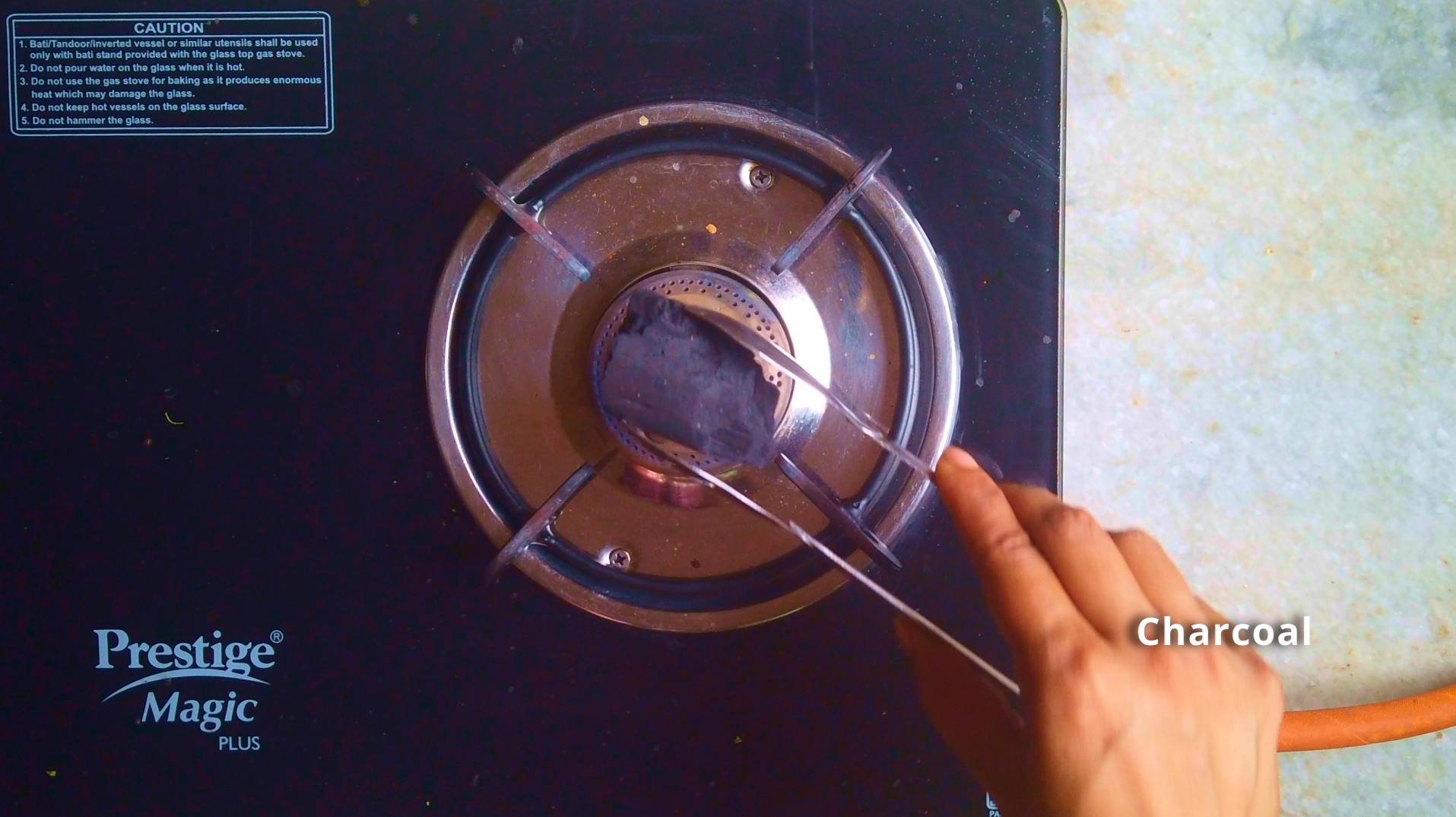 - Step 16: Using a kitchen tong, heat a piece of natural charcoal on an open flame, or with a kitchen blow torch until it turns red-hot. Please do ensure there are no chemical in your charcoal.