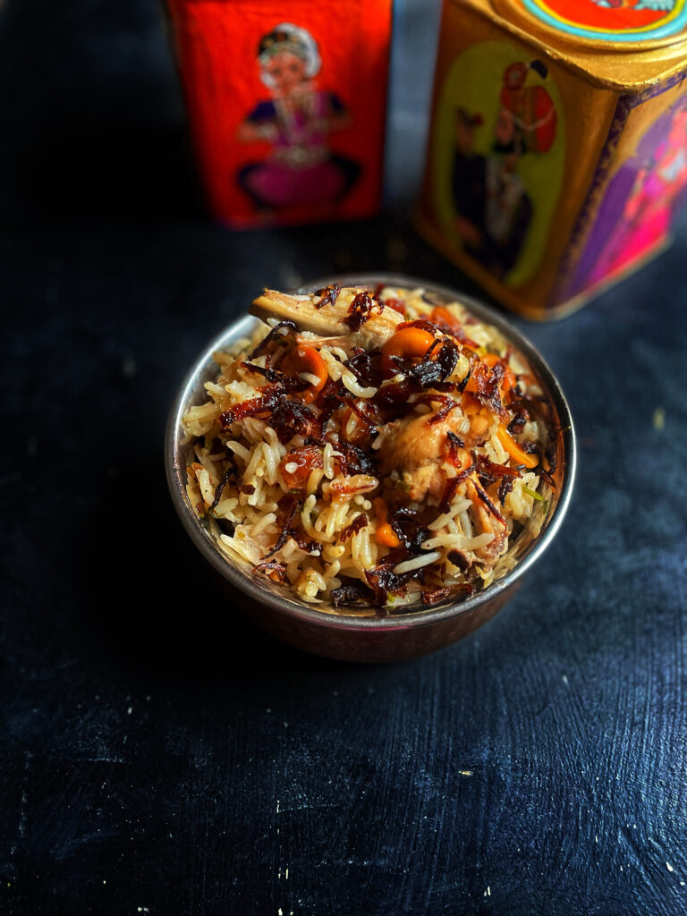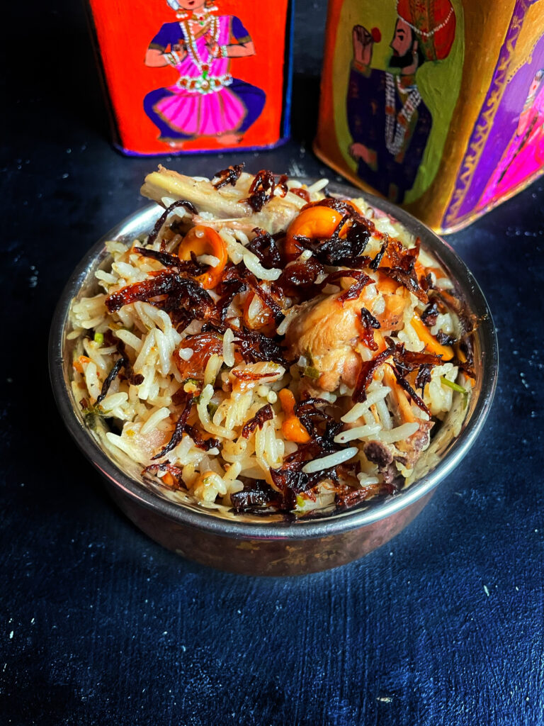 Traditionally cooked in a pressure cooker or pot, chicken pulao takes less than 30 minutes from start to finish, making it ideal for weeknight dinners. It’s also a versatile recipe-you can prepare it in small quantities for a cozy family meal of scale it up easily for festive gatherings. This beloved dish often makes its way to the table during celebrations such as Durga puja, Eid, Christmas, as well as weddings and special occasions.