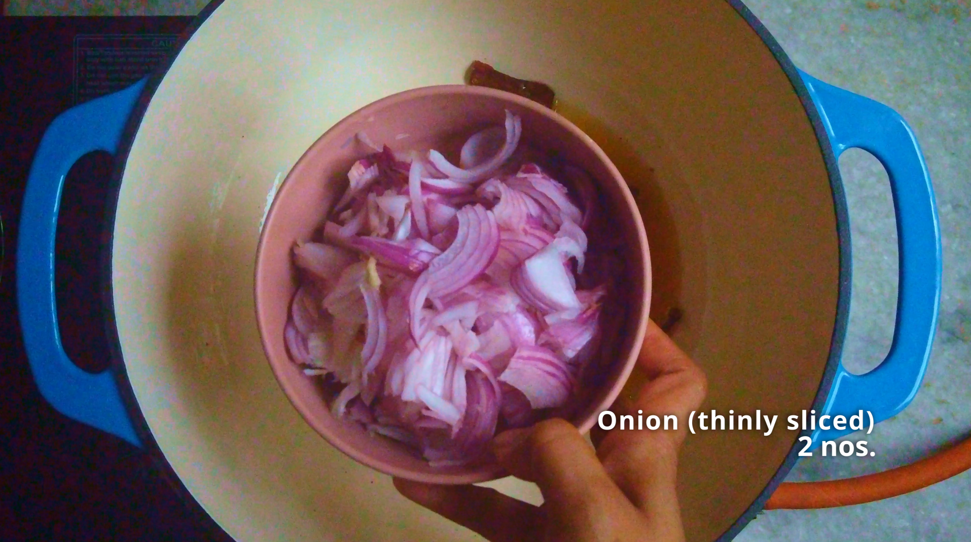2 nos. Onion, thinly sliced