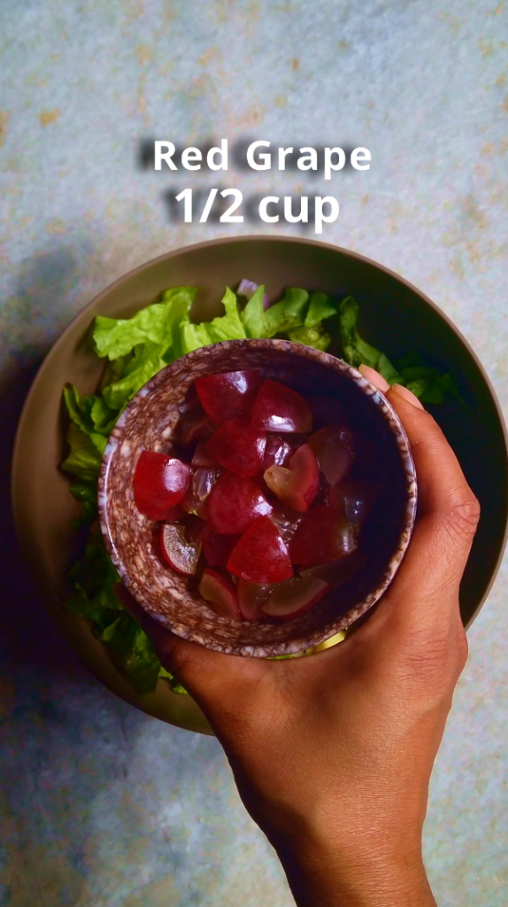 Grapes: Red or purple grapes are classic choice because they look vibrant ad offer a juicy sweetness that brightens each bite. Green grapes work just as well if you prefer a sharper flavour. Cutting them in halves or quarters helps distribute their flavour throughout the bowl and ensures every forkful gets a little burst of fruity freshness.