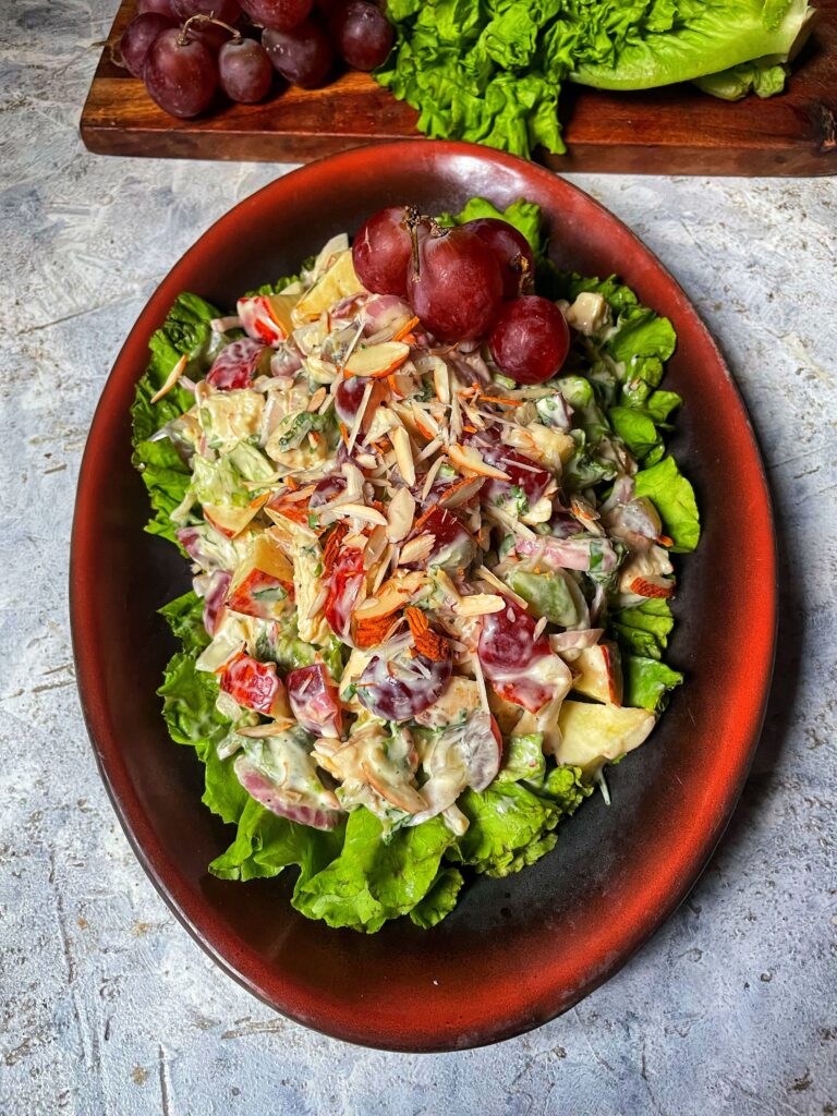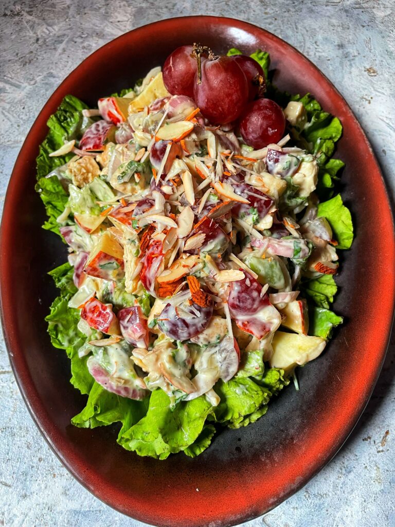 Apples: Crisp apples bring a refreshing crunch and gentle sweetness that contrasts beautifully with the creamy dressing. They help keep the overall texture lively and prevent the salad from feeling heavy.