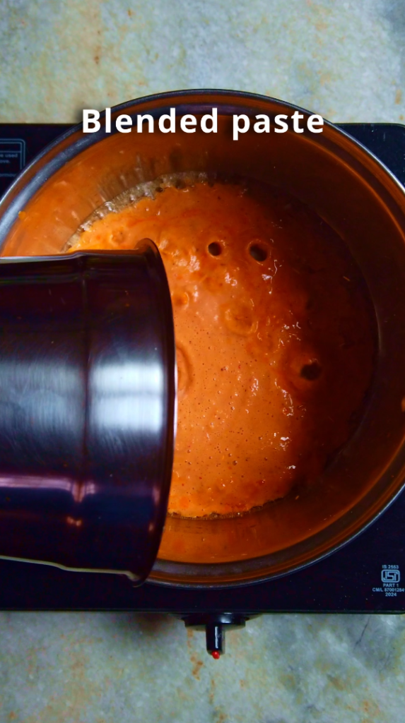 - Step 3: Heat oil in a pot, add the paste and sauté stirring occasionally, for about 4-5 minutes until thick or cooked well.