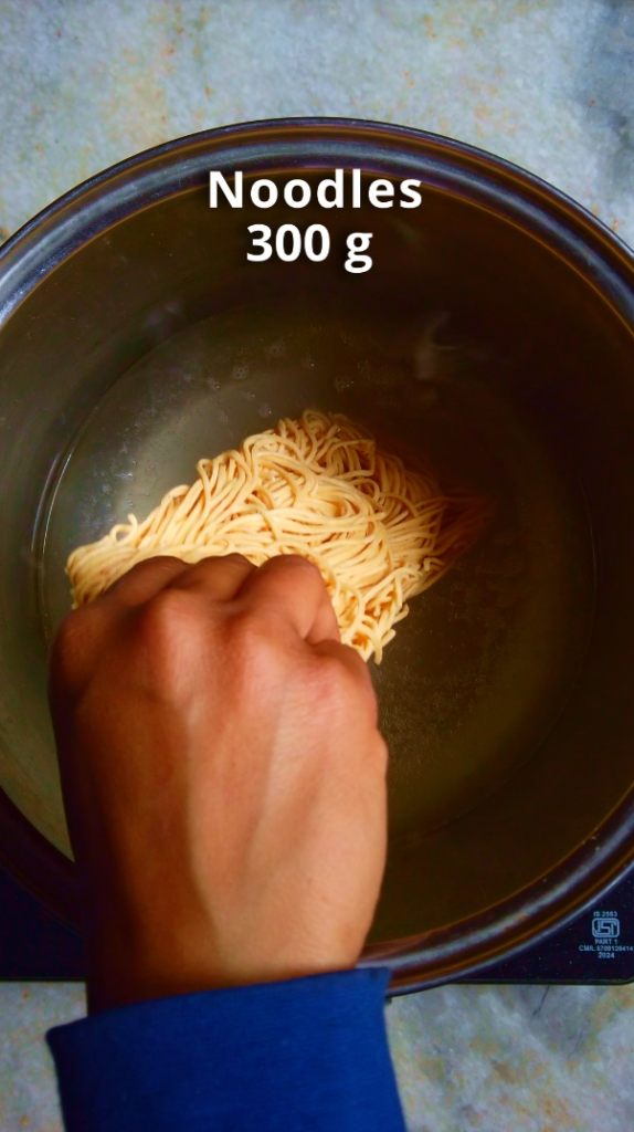 - Step 6: In a pot add water and get it to a boil. Add noodles and boil it for 5-6 minutes on high flames. Drain and keep aside.