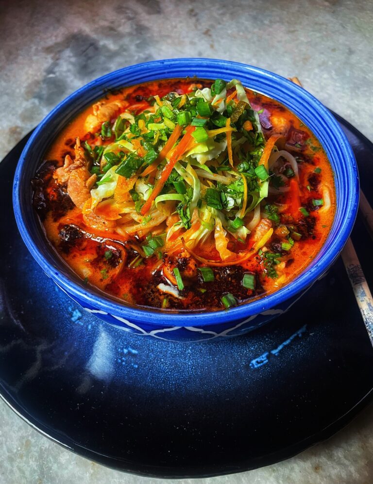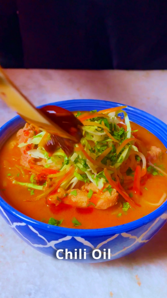 What makes chicken Thukpa special is how complete it feels as a meal. A single bowl brings together soft noodles, juicy pieces of chicken and a generous mix of vegetables, all swimming in a broth that’s layered and soothing. The flavour build slowly, warming you from the inside out, while a drizzle of chili oil adds just enough heat to keep things exciting. It’s the kind of dish that fills you up without feeling heavy.