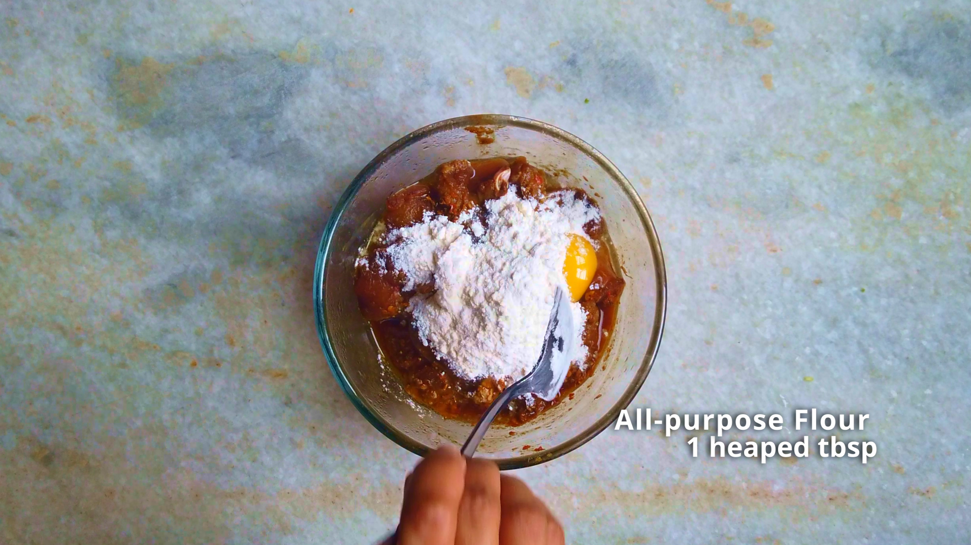 - Step 3: After marinating the chicken for 15 minutes, add egg, all-purpose flour and corn starch and mix properly.