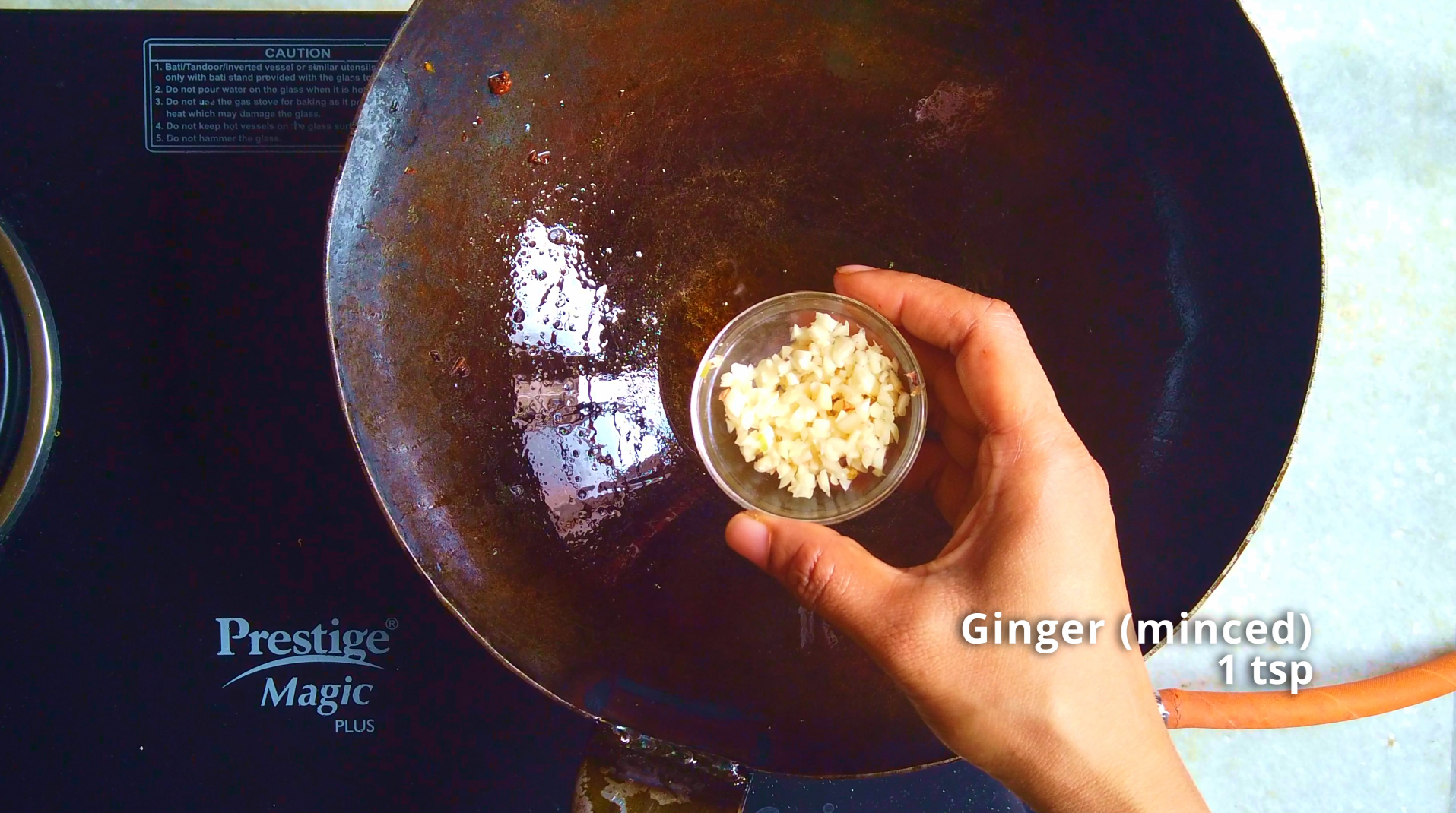 - Step 5: In the wok add minced ginger and minced garlic, stir fry for few minutes.