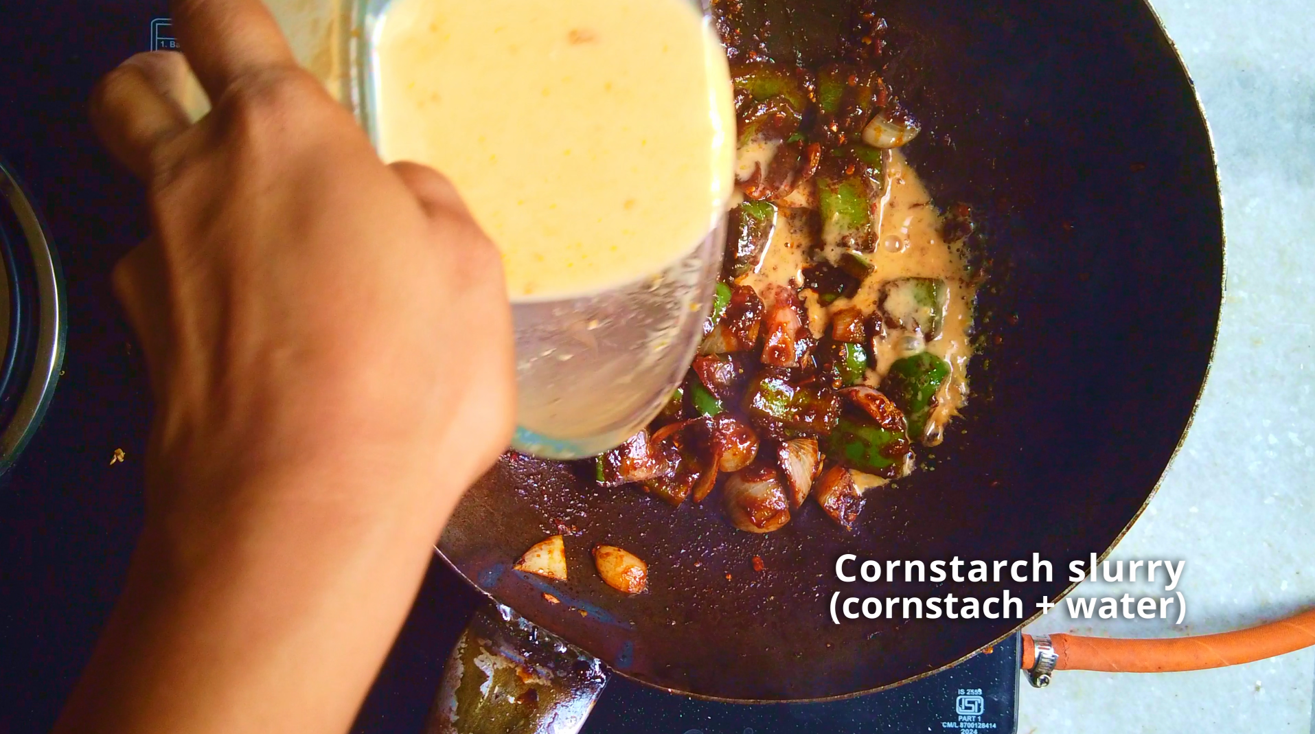 - Step 8: In a bowl combine cornstarch and water. Add the cornstarch slurry to the wok and stir to combine.
