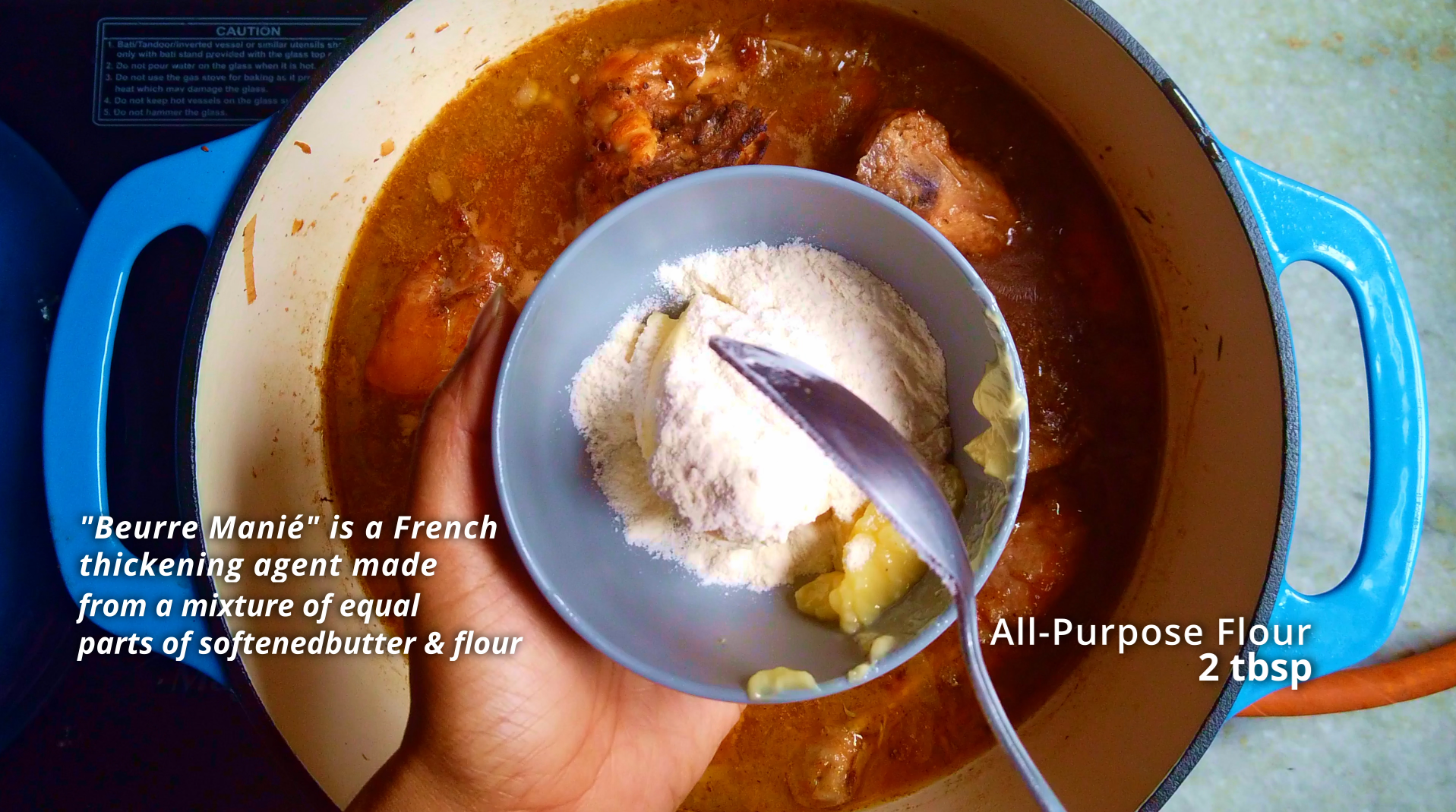 - Step 13: For Beurre Manié, In a small bowl, mash softened butter and flour together until smooth. Spoon a little of the hot stew to form a paste, then add this mixture into the stew.