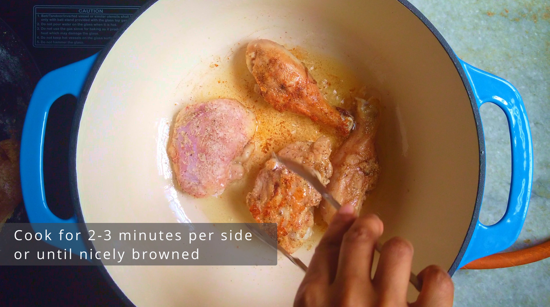 - Step 8: Now, add the seasoned chicken, cook for 2-3 minutes per side or until nicely browned. Remove the chicken in a plate, set aside.