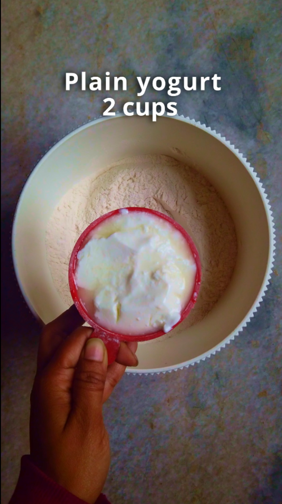 - Step 2: Gradually add the yogurt and mix until a smooth dough is formed.