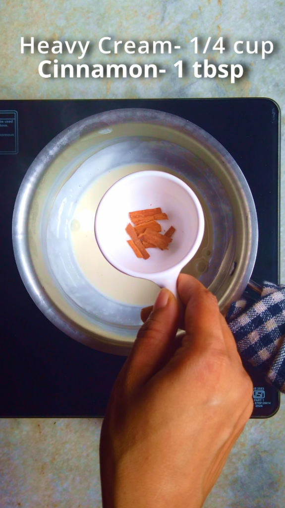 - Step 1: In a saucepan combine heavy cream, cinnamon and star anise. Warm for few minutes. And remove from the heat.