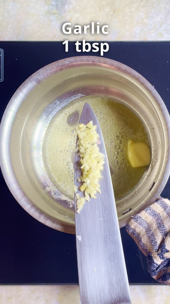 - Step 1: Melt butter in medium saucepan over medium heat. Add garlic and sautée for few seconds. Add onion and sautée for few seconds.