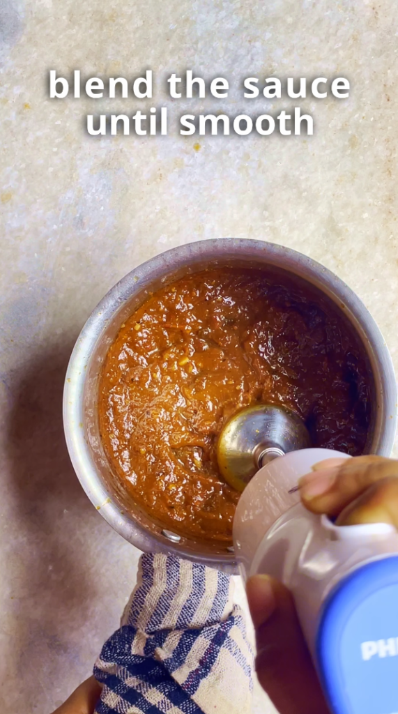 - Step 4: Let the sauce cool to room temperature. Then blend the sauce using hand blender until smooth.