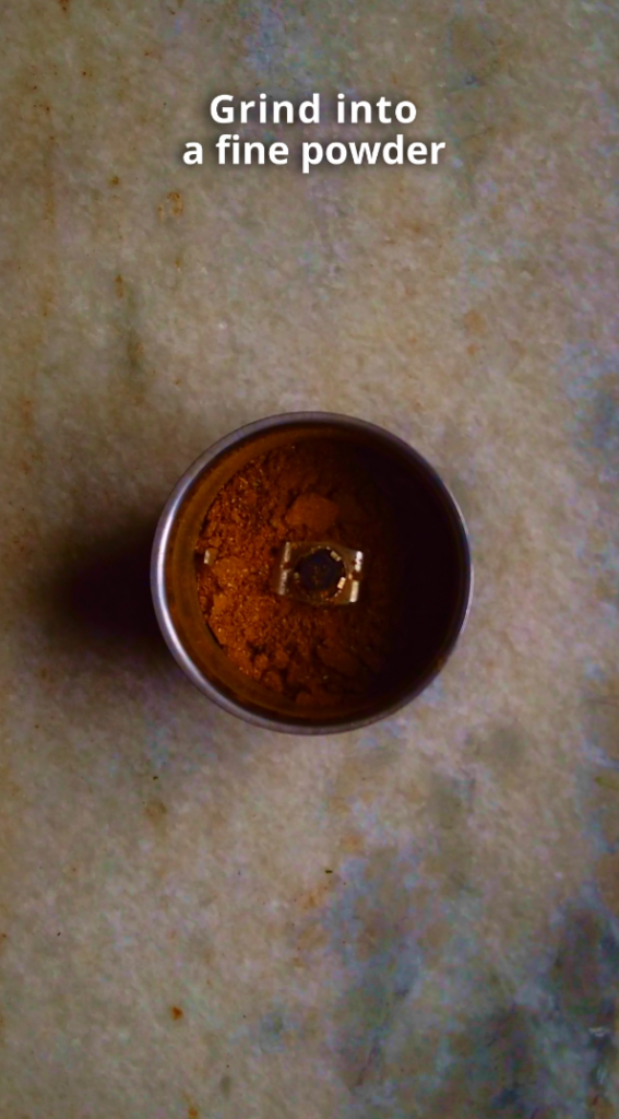 - Step 2: Allow the spices come to room temperature. Next transfer the toasted spices to a grinder and blitz them till you have a fine powder.