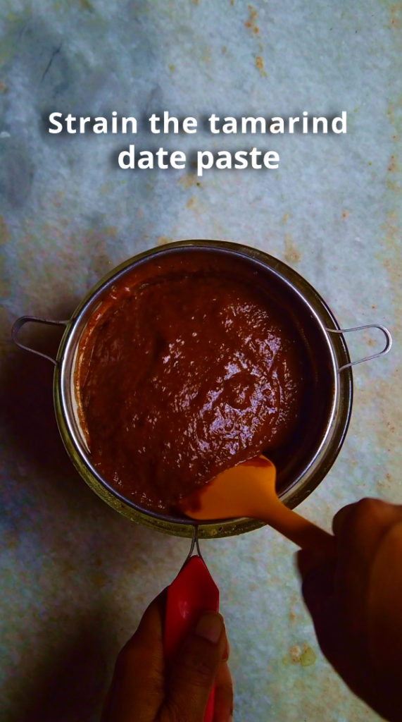 - Step 2: Once soaked, transfer them to a grinder jar & blend into a smooth, lump-free paste, add more water if required. The strain the tamarind-date paste and discard any fibrous bits from tamarind.