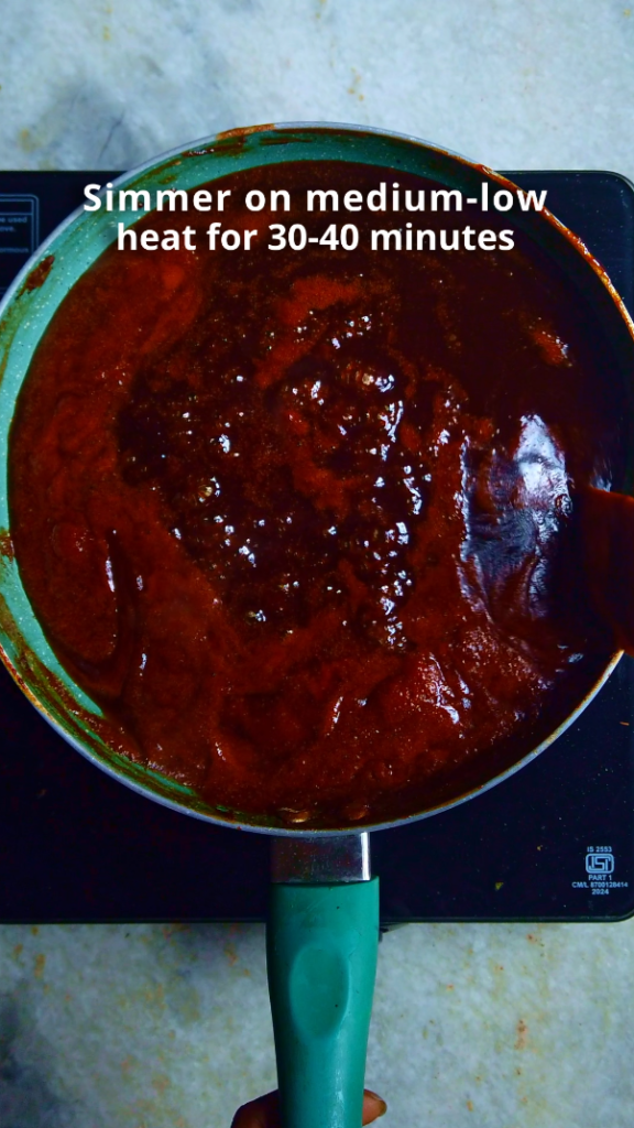 - Step 4: Once the mixture comes to a boil, reduce the heat to medium-low and let it simmer, stirring at regular interval for 30-40 minutes.
