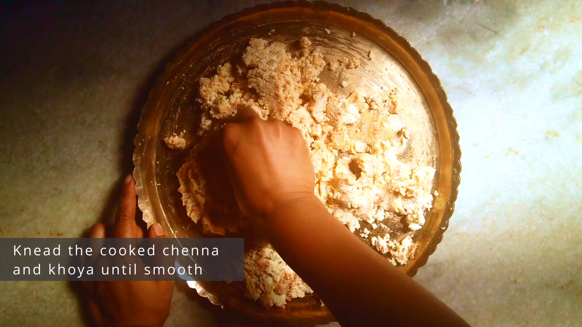 • Step 6: Now knead the cooked chenna and khoya until smooth while they are still warm.