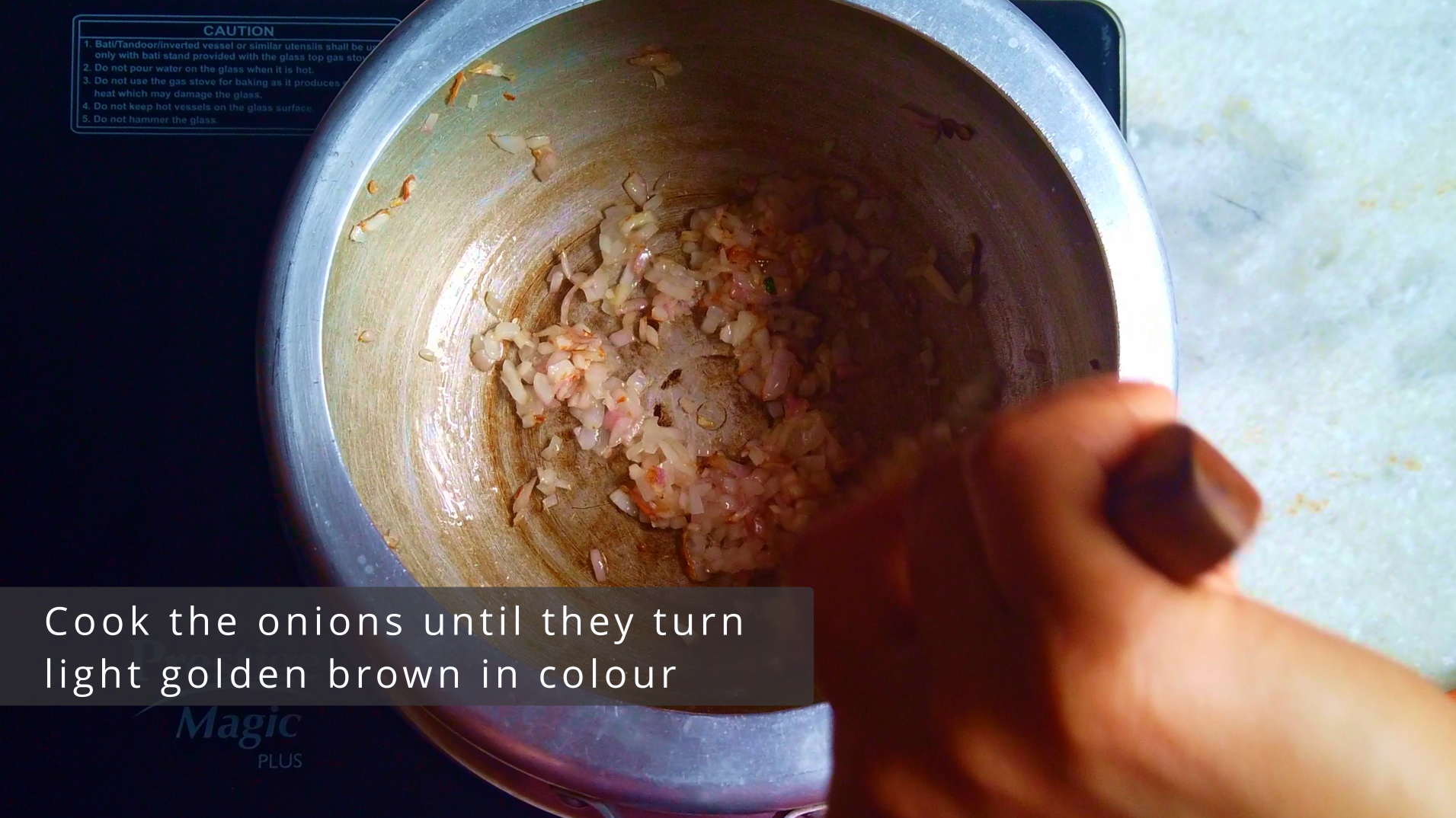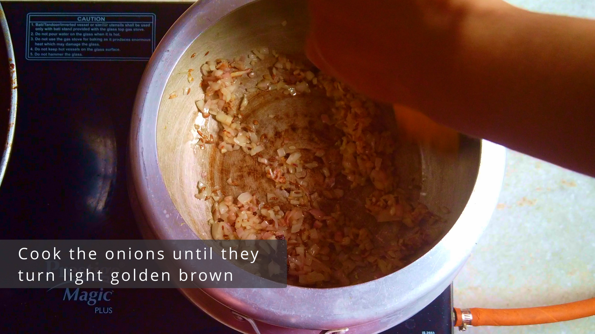 • Step 10: Heat oil in a pressure cooker and add chopped onions, cook the onions until they turn light golden brown in colour.