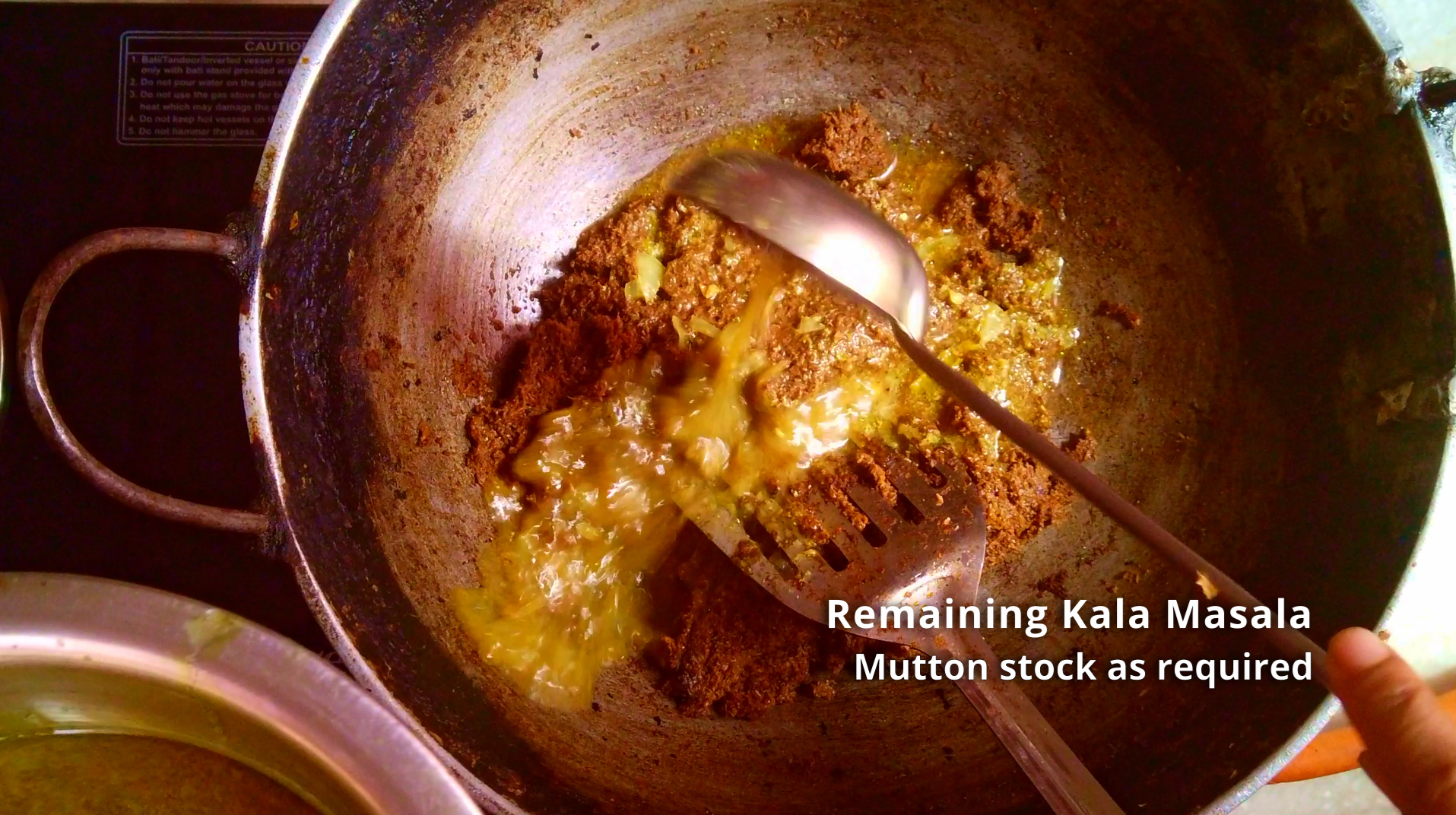 • Step 19: Use the same wok used for cooking the Kala masala. In the remaining cooked Kala masala add mutton stock, cook on medium heat for 6-8 minutes.