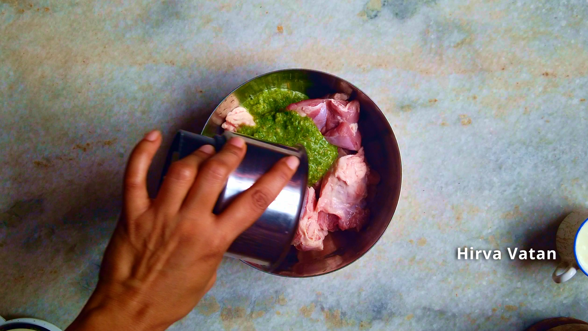 • Step 4: In a large bowl, combine mutton, Hirva vatan, curd, turmeric powder and salt to taste, mix and marinate well. Refrigerate the mutton and marinate for minimum 1 hour or overnight for the best results.