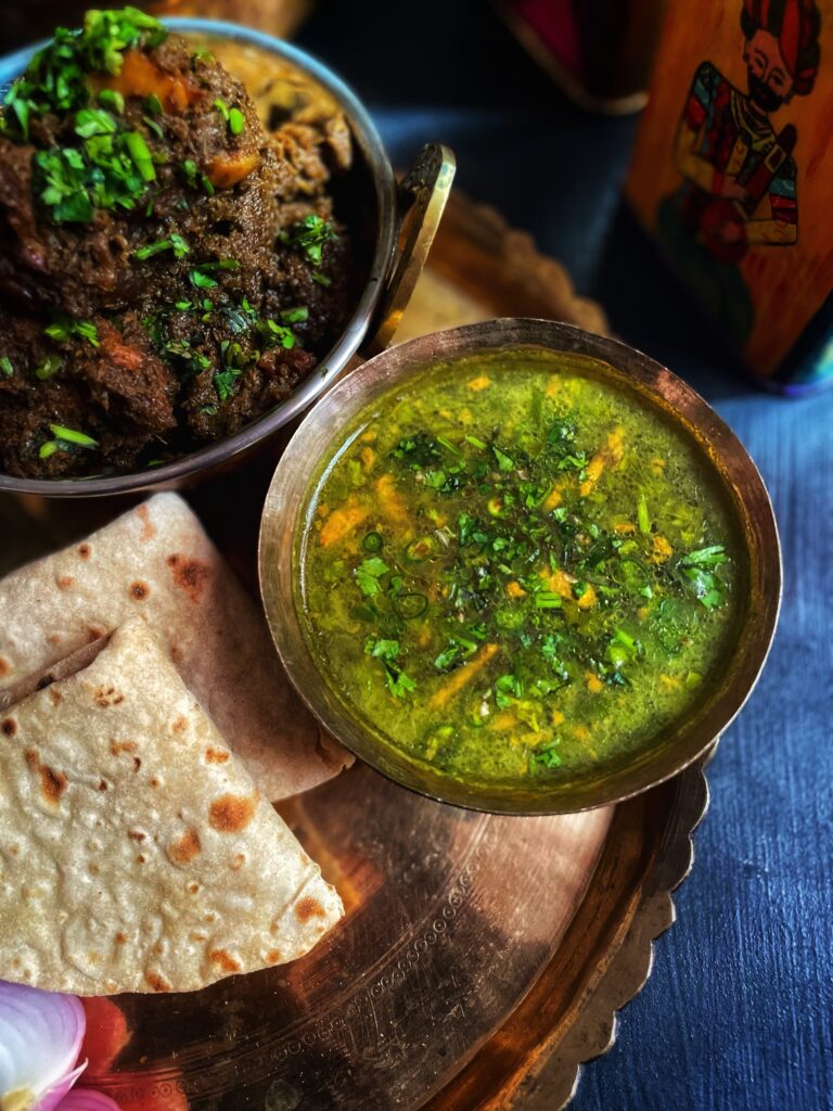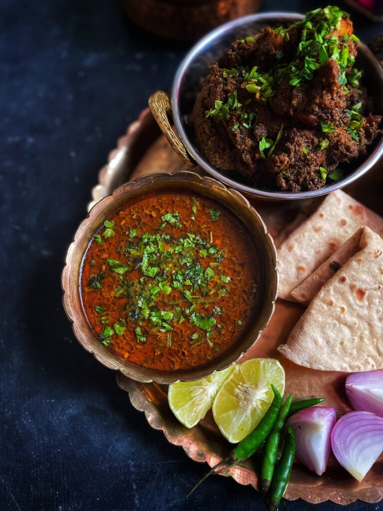 What sets Kala Mutton apart is its unmistakable dark, almost inky gravy. This striking colour comes from patiently browning onions and coconut until they reach an intense depth, a step that defines the character of the dish. The result is a robust, smoky curry where the richness builds gradually with every spoonful. Bold, hearty and unapologetically intense, Kala Mutton is a true expression of Maharashtra’s time-honoured cooking traditions.