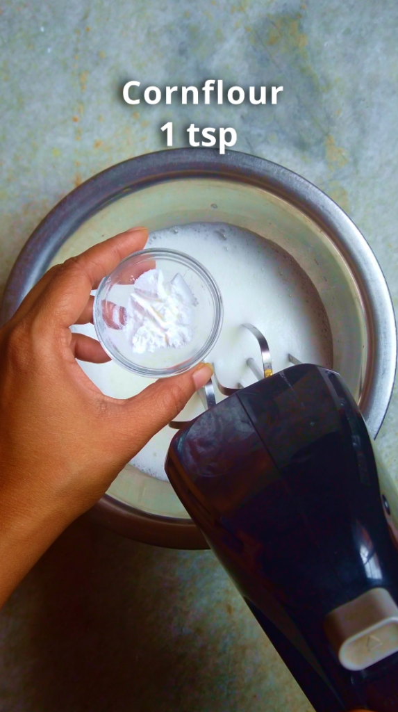 - Step 4: Then add cornflour and continue to beat until soft pick is form.