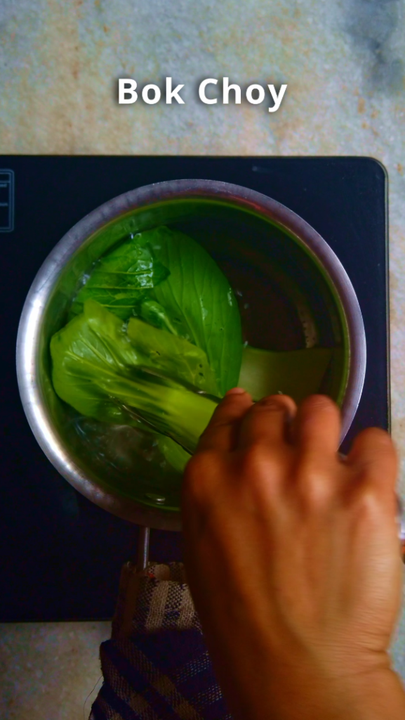 • Step 6: Bring a pot of water to boil, cook the bok choy for about a minute or until just tender. Then cook ramen noodles in the same boiling water according to packet instructions.