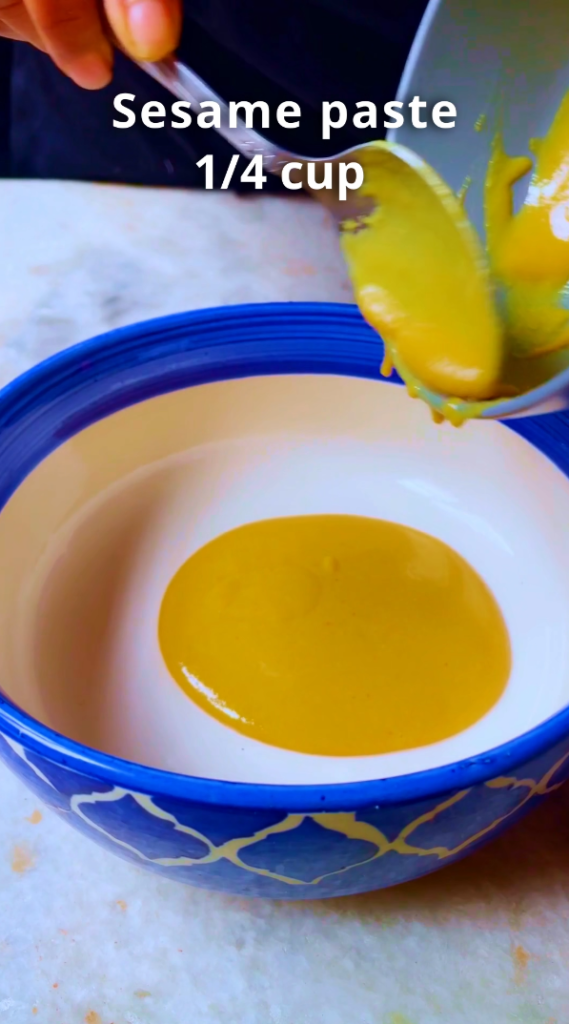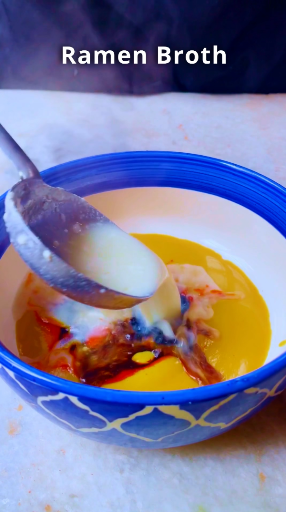 • Step 7: In a serving bowl, combine sesame paste, Chili Oil/ Ramen Chili paste, soy sauce and ramen broth.