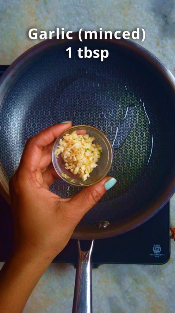 • Step 1: Heat oil in a frying pan over high heat, add minced garlic and saute for few minutes.
