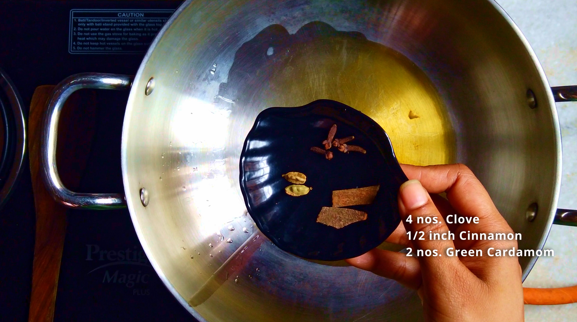 • Step 5: Heat ghee and oil in a wok, then add cinnamon stick, cloves and green cardamom, sauté for few minutes, until the spices are fragrant.