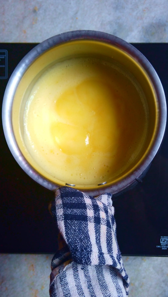 • Butter: Butter adds richness and a creamy mouthfeel while also helping the curd set properly. Unsalted butter is best, as it gives you full control over the flavour. Adding it while cold helps the curd thicken efficiently and results in a smoother finish.