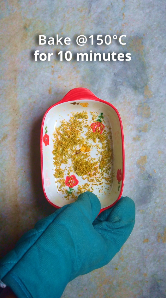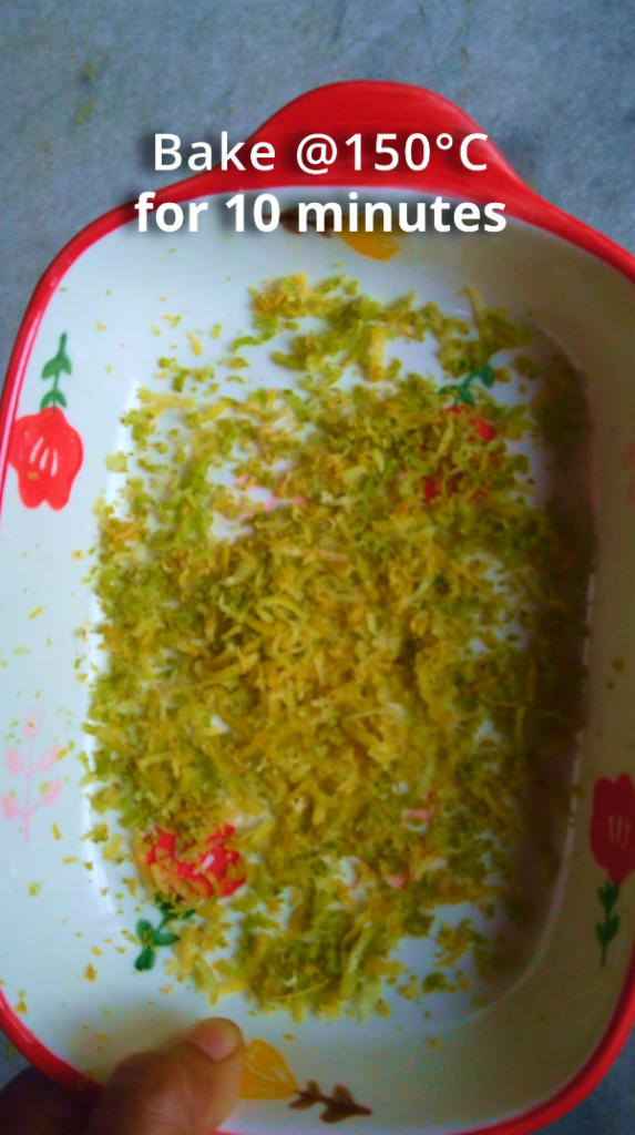 - Step 2: Bake in a preheated oven @150°C for 10 minutes, until the zest is fragrant and dry but not browned. The zest should be crispy and dry to touch. Remove the zest from oven and permit to cool for 2-3 minutes.