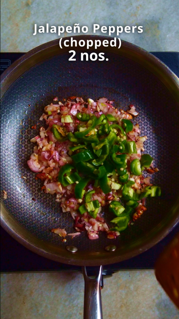 - Step 2: Add chopped jalapeños and cook for 3-5 minutes or until they start to get soft. Then add tomatoes and cook for 2-3 minutes or until they start to get soft.