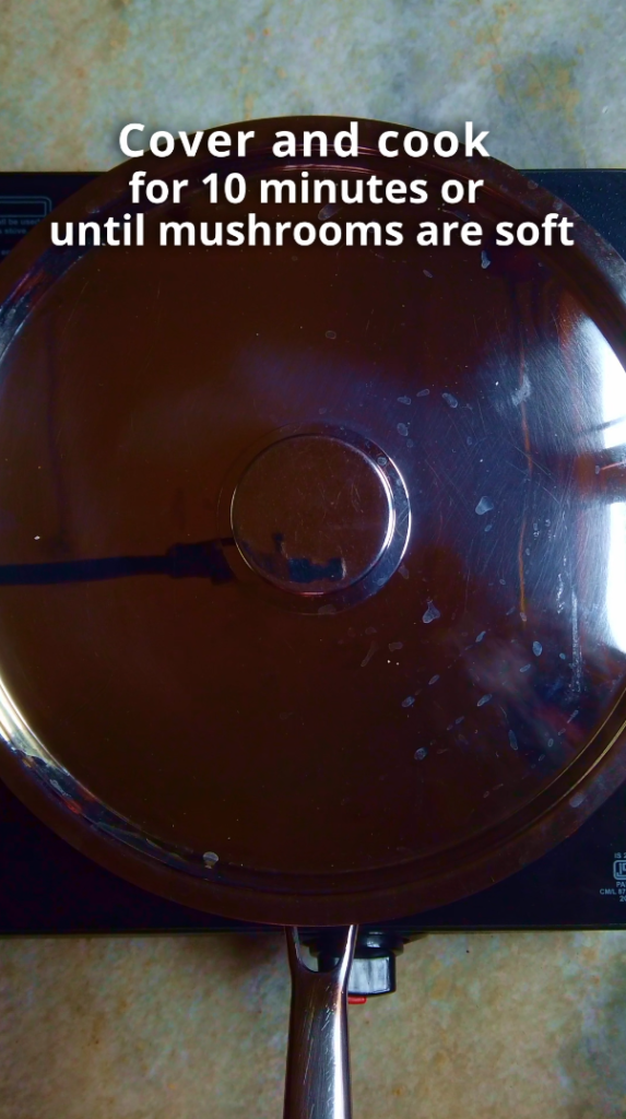- Step 4: Cover and cook over medium heat for 10 minutes or until mushrooms are soft.