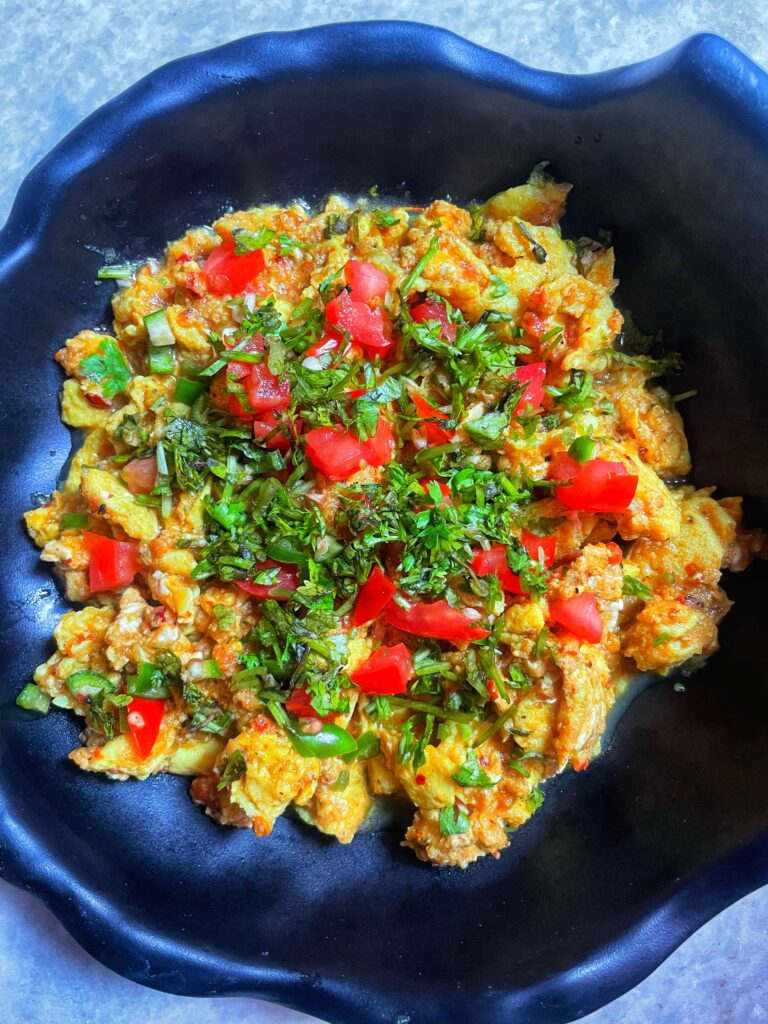 Perfect for busy mornings or lazy weekends, Huevos al Albañil captures the essence of Mexican home cooking- fast, flavourful and made with love. This dish showcases how a few everyday ingredients like tomatoes, chilies and onions can transform ordinary eggs into something deeply delicious. The salsa brings a bright, spicy kick that perfectly complements the soft, creamy eggs.