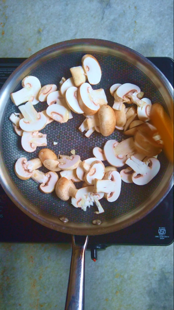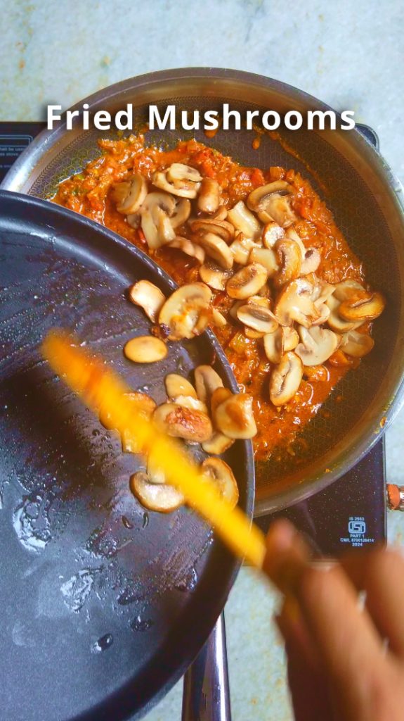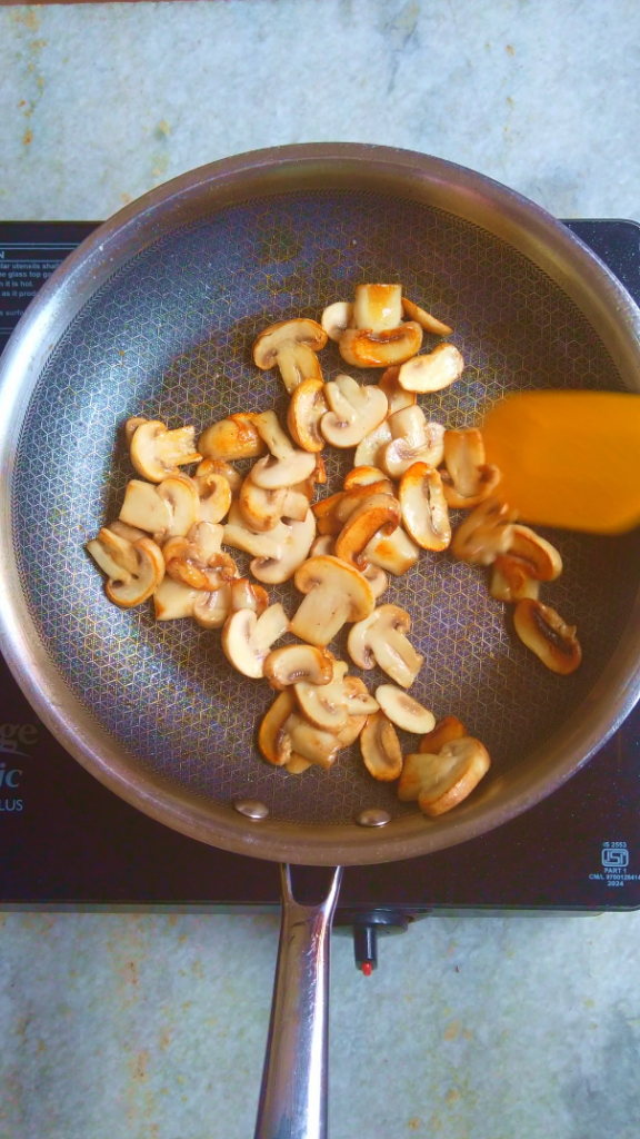 - Step 2: In a pan heat 1 tbsp Oil and add the sliced mushrooms and fry them until golden. Set aside.