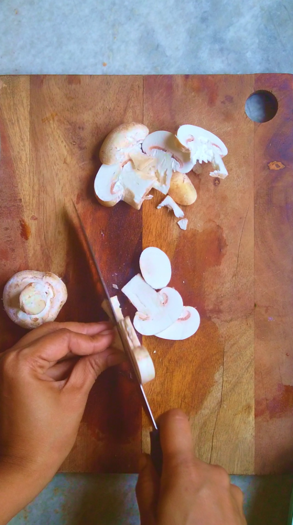 - Step 1: Toss the mushrooms in wheat flour, pick each and gently rub it to remove any kind of dirt and dust. Then slice them and set aside.
