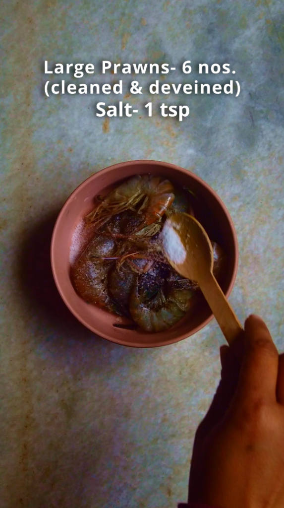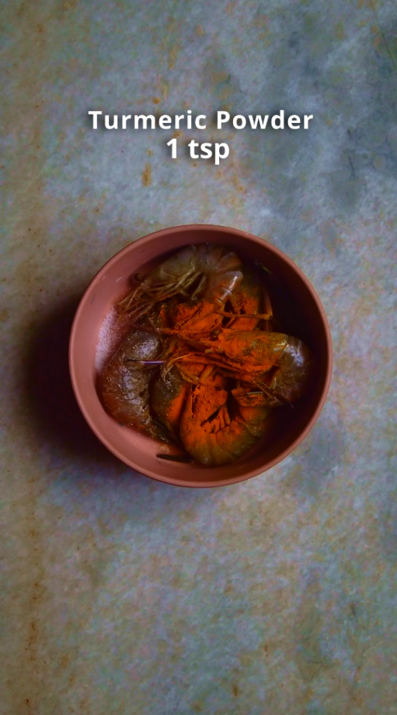 - Step 1: Marinate the prawns with 1 tsp salt and 1 tsp turmeric powder. Keep aside for at least 15 minutes.