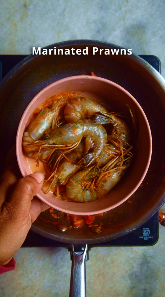The texture plays an equally important role. The gravy is cooked down to a semi-dry consistency, allowing the masala to cling to each prawn, creating a well-coated, flavourful bite every time. This method ensures that the prawns remain the highlight, with the spices enhancing rather than masking their taste.