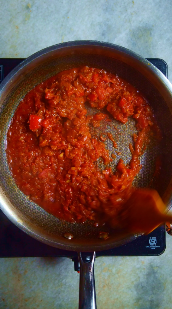 - Step 4: Add finely chopped tomatoes and cook for 8-10 more minutes on low heat until you get a thick consistency.