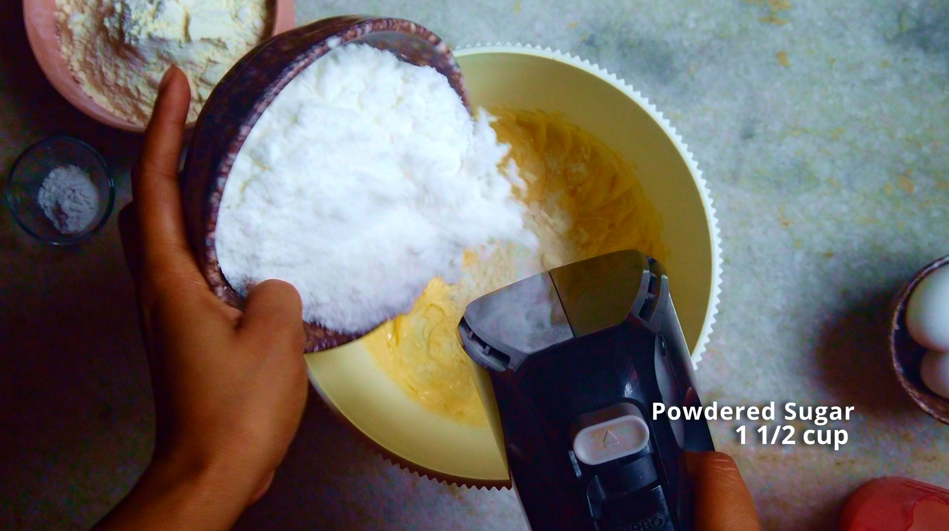 - Step 6: Gradually, add in the powdered sugar and continue creaming until really light and fluffy. Next add in the eggs and beat well.