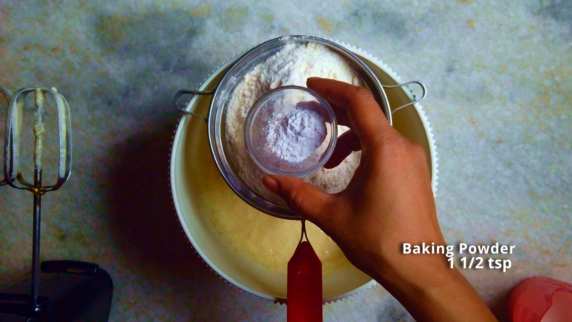 - Step 7: Sift flour, baking powder and salt in the mixing bowl, to get rid of any lumps and mix.