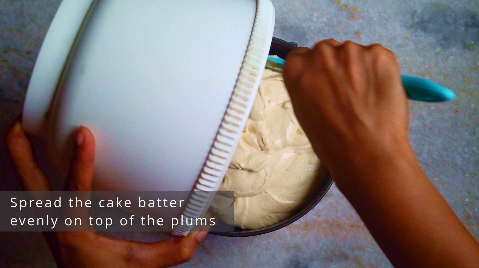 - Step 9: Gently spread the cake batter evenly on top of the plums.