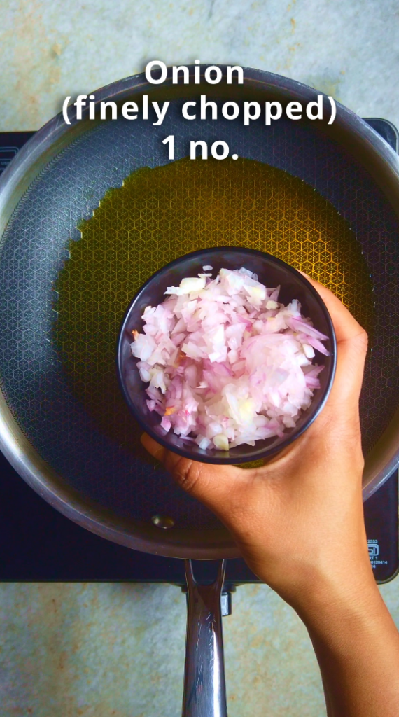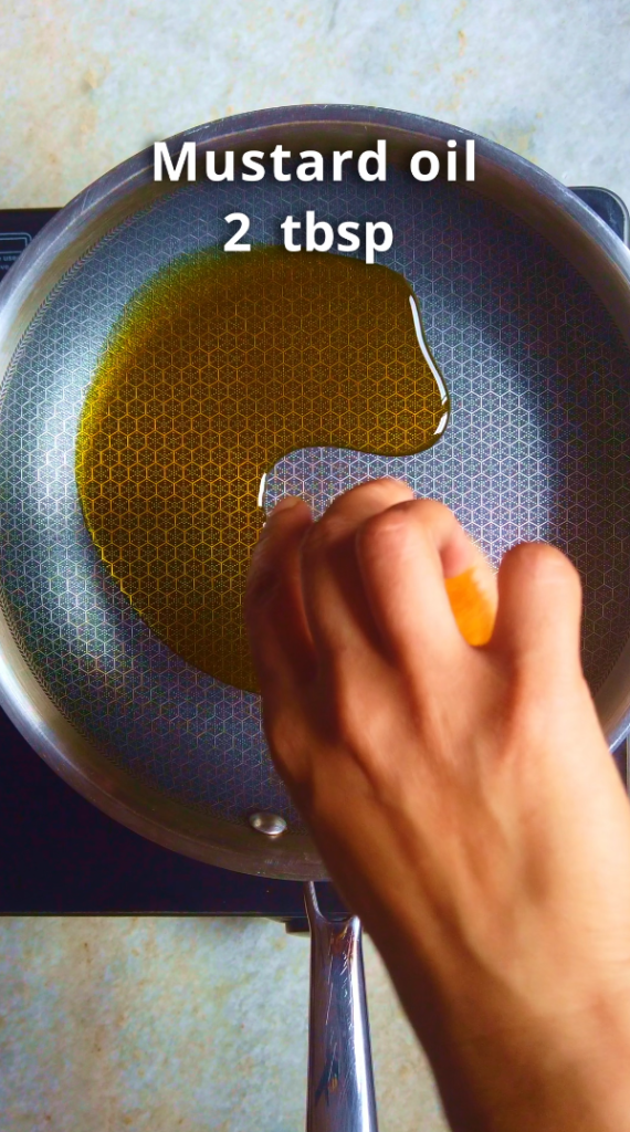 • Step 2: Heat 2 tbsp mustard oil in a pan, then add chopped onions and fry for 5-6 minutes or until translucent.
