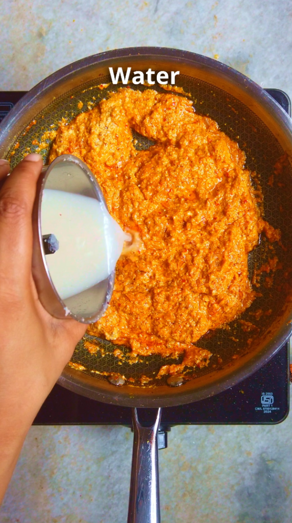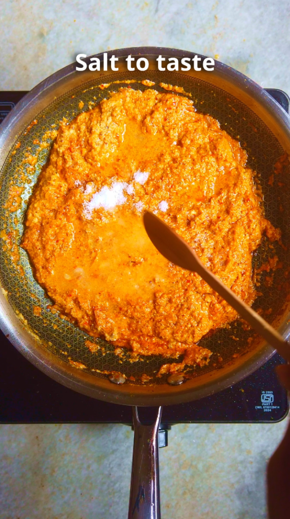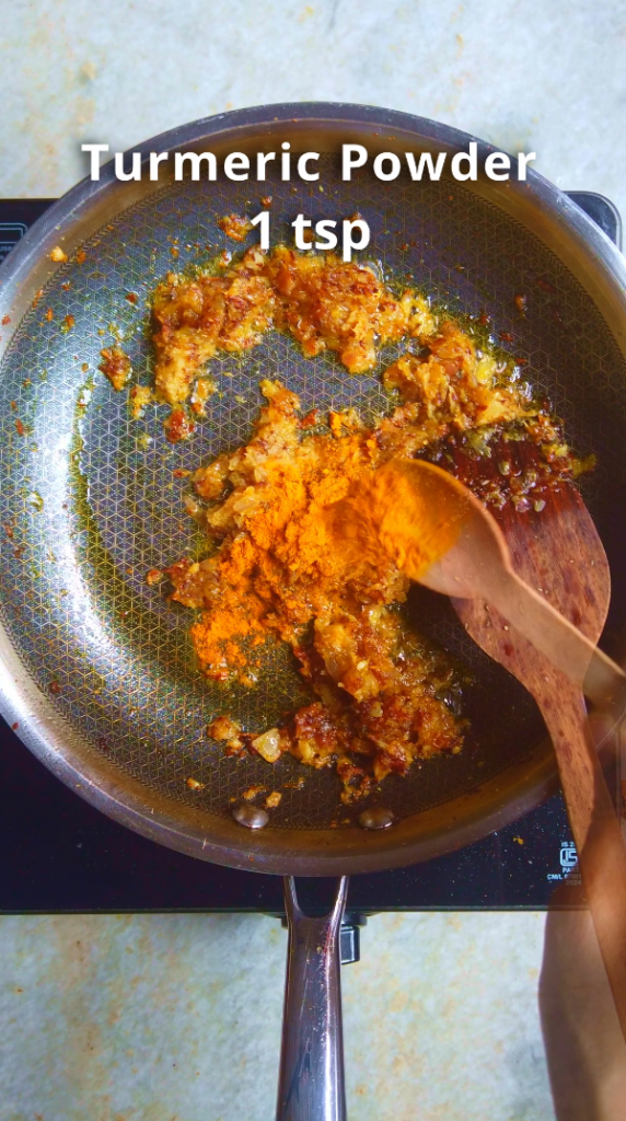 • Step 4: Add turmeric powder and red chili paste, saute for 2-3 minutes.