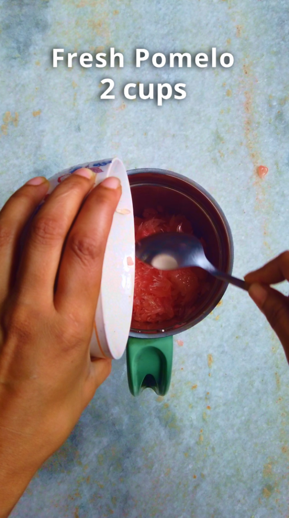 - Step 2: Transfer the pomelo fruit in the blender with water and process to get pomelo juice. Then strain the pomelo juice.