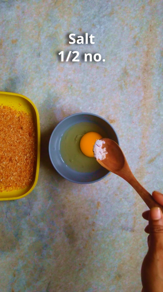 - Step 8: In a bowl whisk egg, salt and black pepper powder.