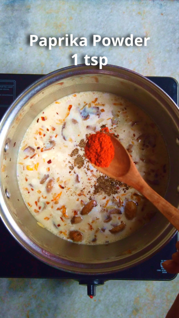 - Step 5: Add salt, black pepper powder and paprika powder and stir to combine.